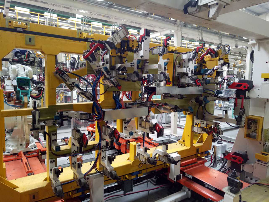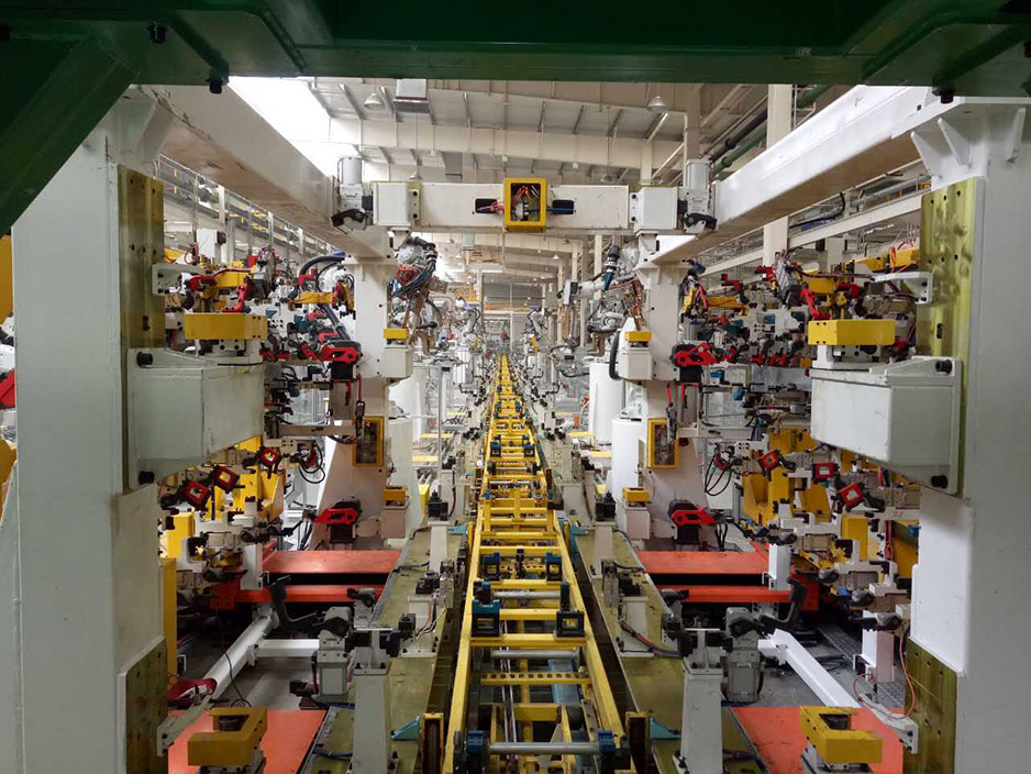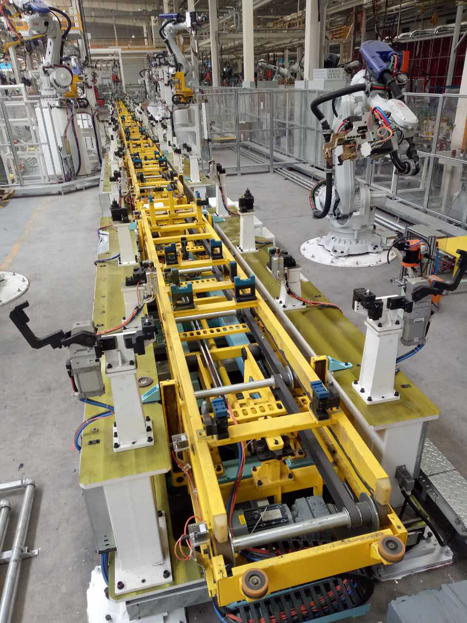 眾泰金華焊裝B11B主線及滾邊電氣控制系統(tǒng) 其中包括:車身主焊線,四門兩蓋滾邊島工位等。 該項目包含:西門子300安全PLC,西門子觸摸屏TP1200,ABB機器人,等。